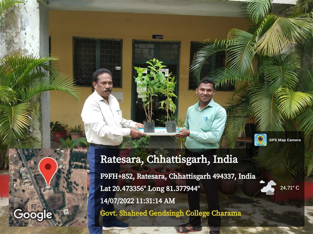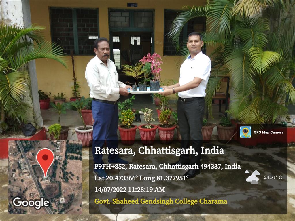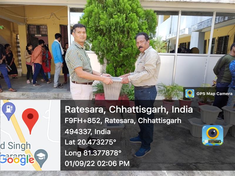 दिनांक : 01-09-2022 को भारतीय राष्ट्रीय छात्र संगठन, चारामा (एनएसयूआई) द्वारा प्राचार्य डॉ. के. के. मरकाम को महाविद्यालय के गार्डन हेतु 05 नग सीमेंट का गमला भेंट किया गया.