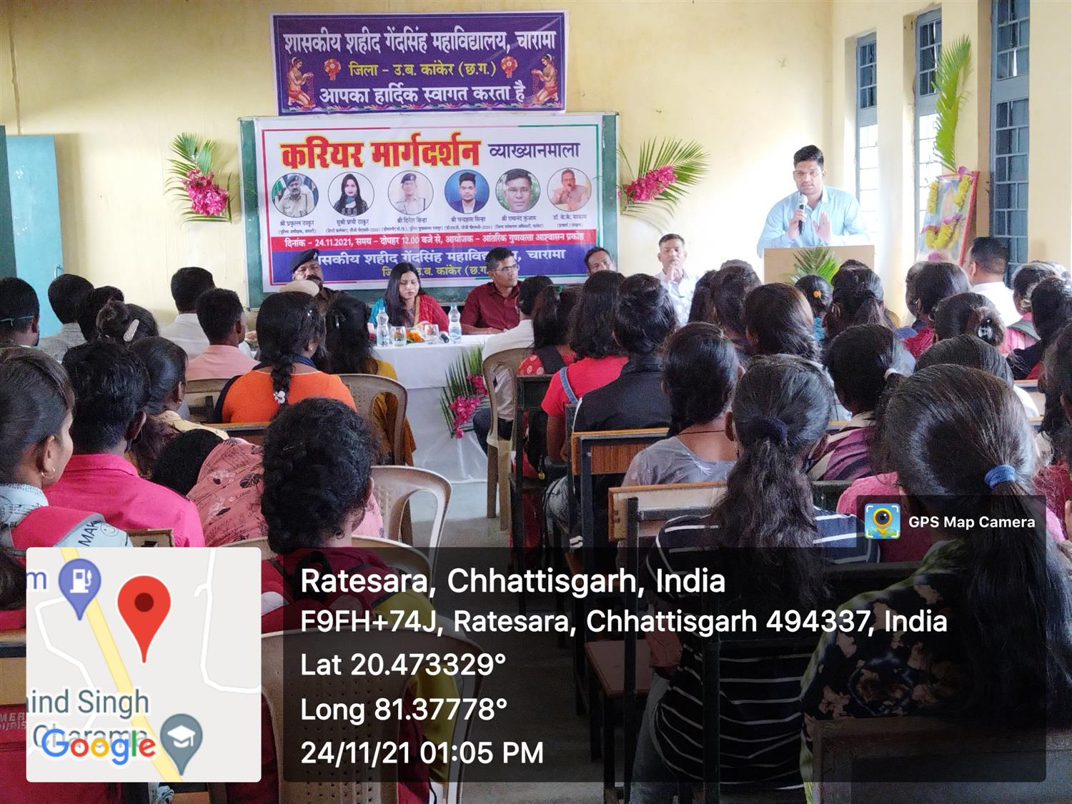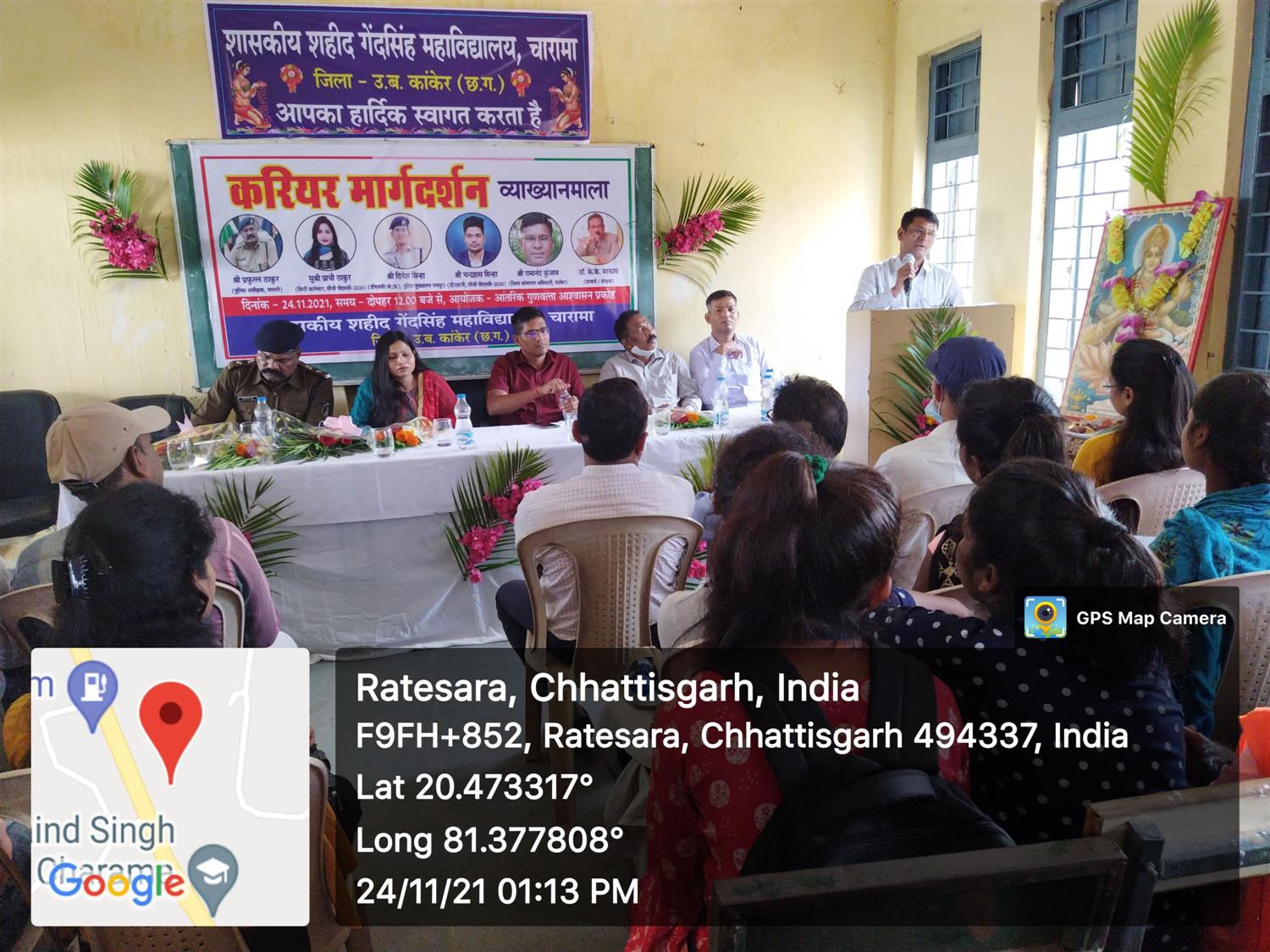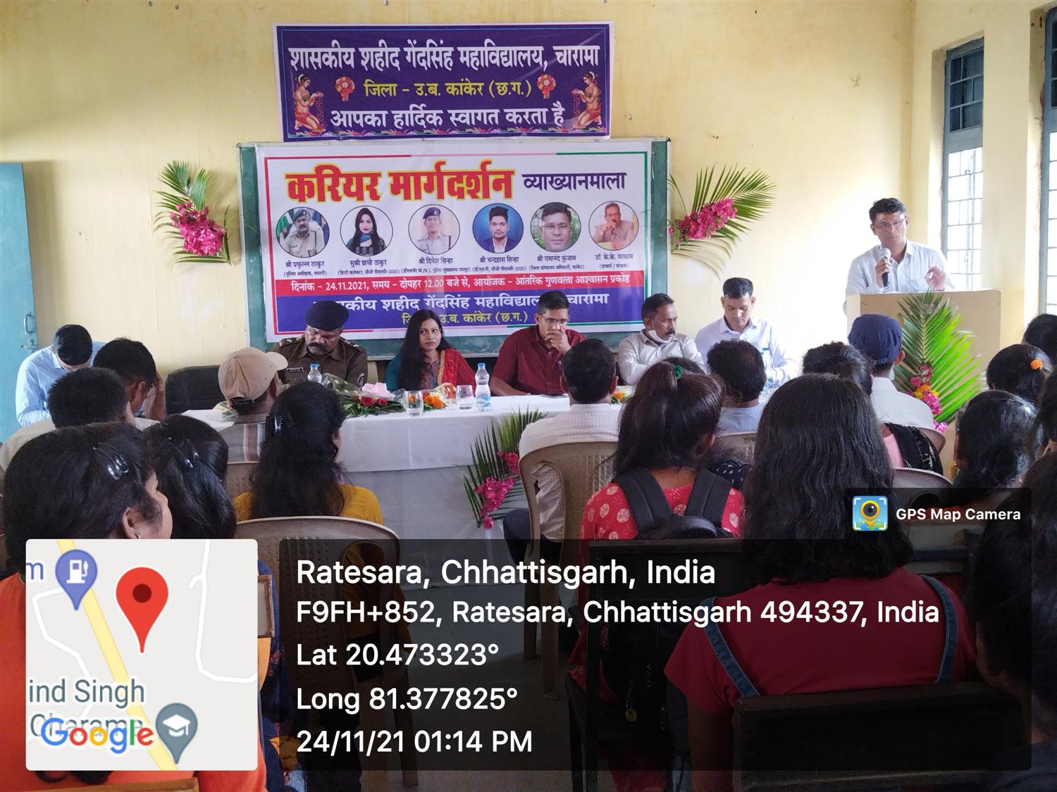 आंतरिक गुणवत्ता आश्वासन प्रकोष्ठ द्वारा दिनांक : 24-11-2021 को "करियर मार्गदर्शन व्याख्यानमाला" का आयोजन किया गया. मुख्य अतिथि श्री प्रफुल्ल ठाकुर (पुलिस अधीक्षक, धमतरी)थे.